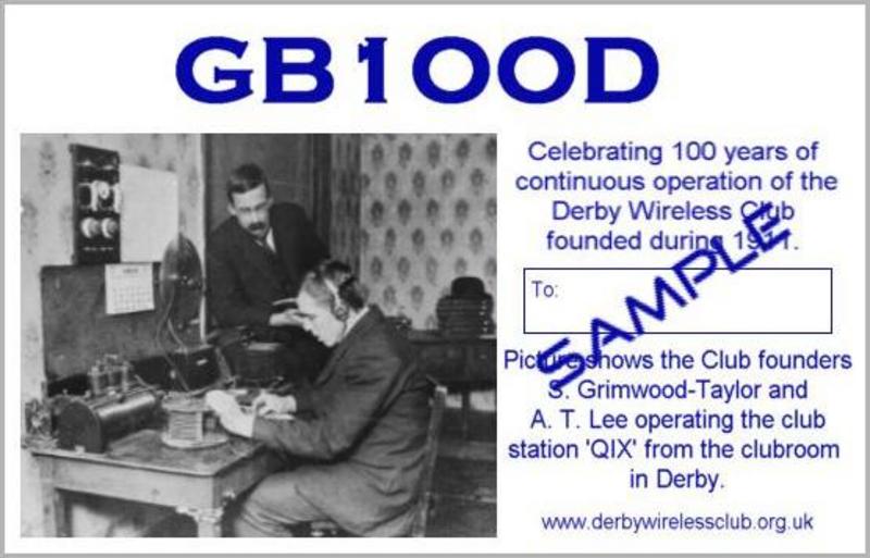 GB1OOD, Golf Bravo 1 Oscar Oscar Delta, is issued for the year 2011 by Ofcom as a Special event callsign. It will be used through out the year to celebrate the 100 years of the Derby Wireless Club, founded in 1911. The oldest continually active local wireless club, now incorporated within Derby and District Amateur Radio Society. From 1st January to 25th March - Operating from the "Silk Mill Museum" located in the City Centre of Derby alongside the River Derwent. The station will have restricted operation due to the museums opening hours. Mostly at weekends.