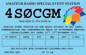 Special event station 4S0CGM will operate during the month of November to commemorate this very special event taking place in Sri Lsnka. This is a unique opportunity for the radio amateurs of Sri Lanka to hail this event and greet the world during this month when many heads of state as well as foreign ministers of 52 Commonwealth countries and numerous delegations come to Sri Lanka in connection with this meeting named CHOGM 2013.