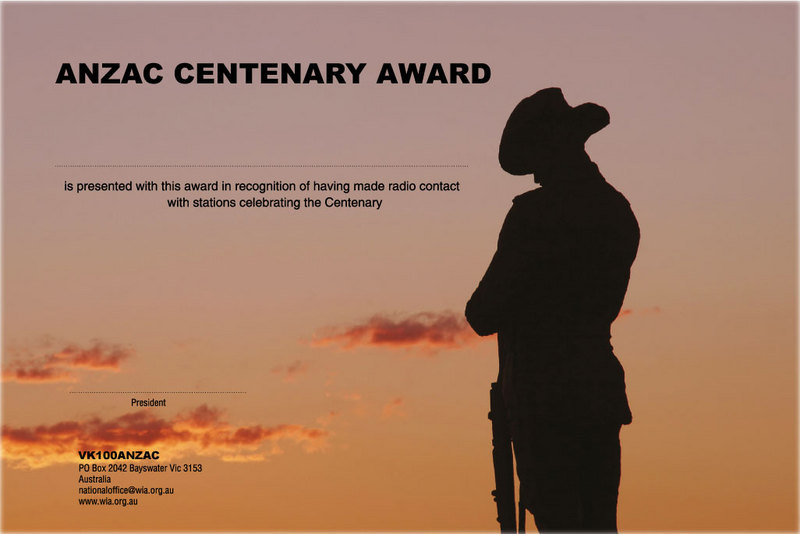 The rules still need 10 qualifying contacts to be logged, but have been loosened up to make the ANZAC Centenary Award even more popular. The 10 contacts can be any ANZAC-suffixed callsign or combination of them. However one contact only allowed for each of VK100ANZAC or the VI state or territory callsign event listed on the WIA website.