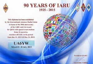 To celebrate the 90th anniversary of the International Amateur Radio Union (IARU) founding in 1925, a very nice IARU award is being issued this year.