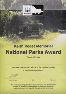 A radio amateur has qualified for a Keith Roget Memorial National Parks Award ultimate - all 45 VK3 National Parks worked.