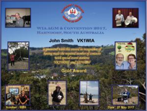 The 2017 AGM award is now available to those who qualify. To apply for your award you must use the WIA online award system via this Link and upload your log with all qualifying QSO. Don't forget that you must "Verify DXCC" before any of them count. Then select "Show Award Status" and select "2017 AGM". If you qualify you should have an "Apply" link shown.