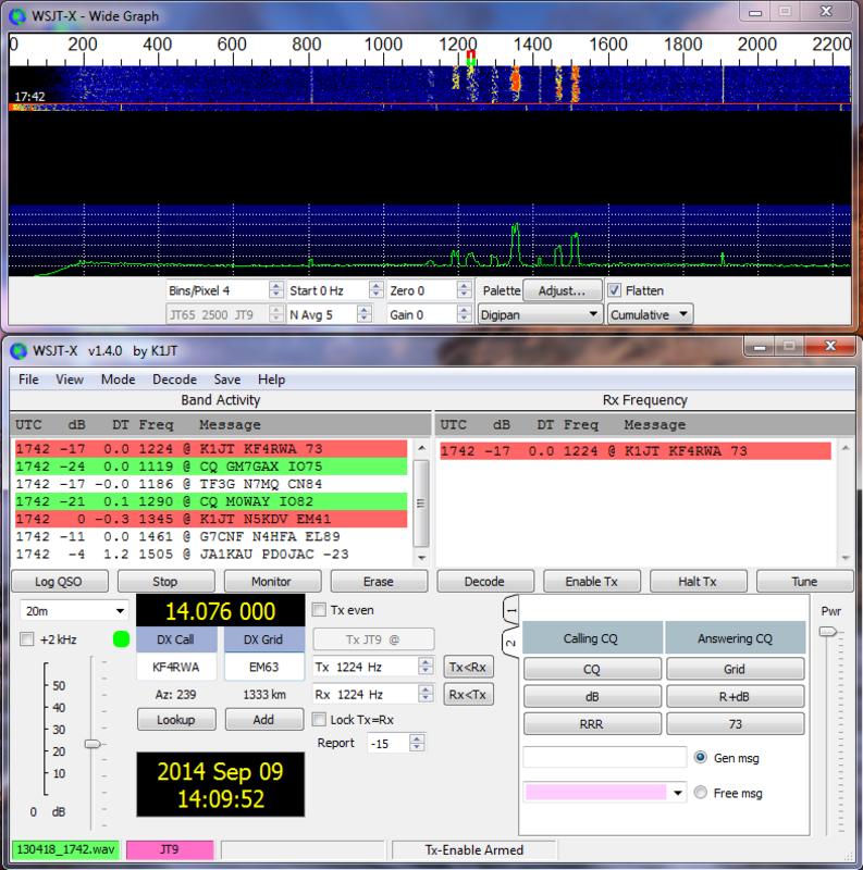 JT4, JT9, JT65, and QRA64 use nearly identical message structure and source encoding. They use timed 60-second Transmit/Receive (T/R) sequences synchronized with UTC.