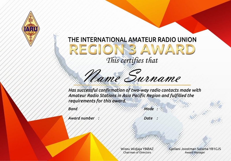 The IARU Region 3 Award will be issued in digital file (pdf format) and will be sent directly by e-mail from the IARU Region 3 Award Manager to the applicant.
