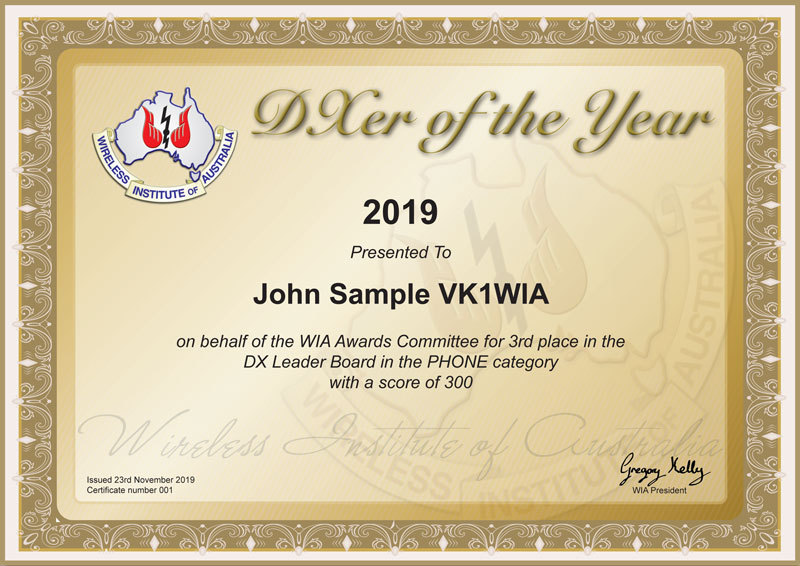 A new Certificate has been produced for past and future winners and place getters of the annual DX Leaderboard competition.