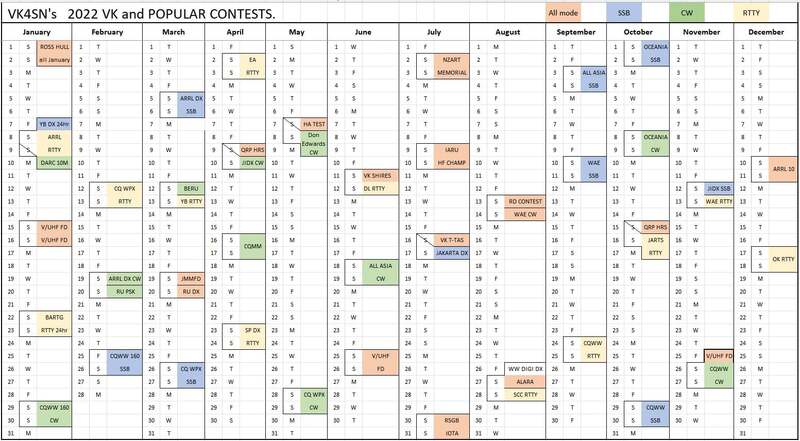 WIA Contest Committee Chairman - Alan Shannon VK4SN has released a new up to date 2022 Contest Calendar.