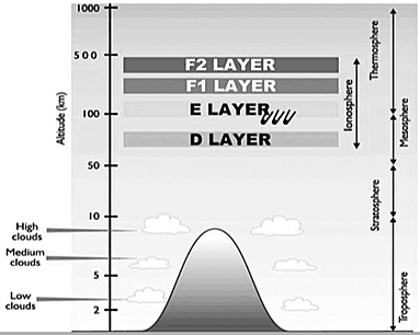 1. Long distance radio communication in the range 3-30 MHz mostly relies on:-