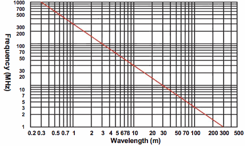 15. A radio wavelength of 20 metres is approximately equal to:-
