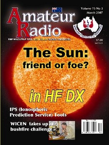 A large part of this issue is devoted to an article on the on-line IPS Propagation Prediction Tools, by Stephen Arnold VK2SJA. Stephen has put in considerable effort and received significant assistance from staff at the IPS. I reinforce our collective thanks for the assistance freely given. While he has good computer skills, Stephen was a newcomer to the on-line prediction tools. I trust that those of you who need propagation predictions find the article useful in exploring these excellent on-line tools. Many local libraries provide free access to the internet; with a little effort, you can have an up to date set of predictions using the latest data.