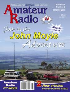 Now that the festive season has passed, we seem to be into the season of that other type of Filed Day – the “hamfest” events are coming up thick and fast. In VK3, this year the season kicked off with the Centre Victoria Radiofest at Kyneton, which has moved to early February for 2008. The following weekend saw the Central Coast ARC event at Wyong. I am sure that both events will have been successful – despite the Wyong event being impacting wet weather. The week after Wyong saw the event in Healesville, then a short gap to the EMDRC event on the second weekend in March. Of course, there are other similar events around the country, offering plenty of opportunities to get together and catch up with friends and to survey the new and pre-loved equipment on offer. I am sure that we will receive reports on many of these events in future issues.
