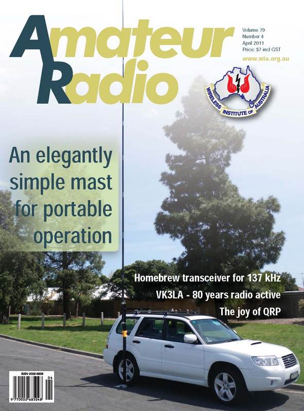 Our cover this month shows the elegant mast system developed and built by Rik VK3KAN. Some parts from a large hardware outlet together with a Squid pole and other low cost components produce a light weight yet versatile mast system suitable for portable operations.