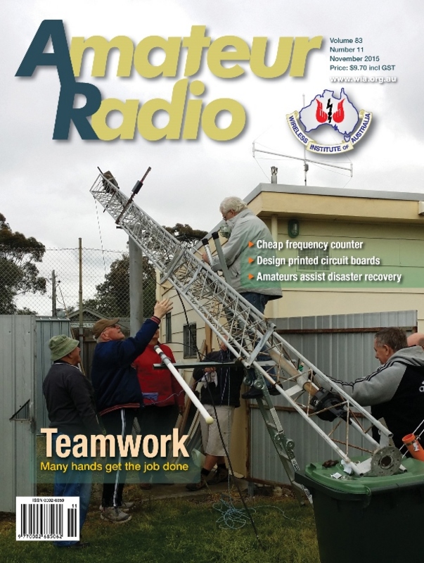 Teamwork in action: Members of the GARC working on a tower at the clubrooms. See the GARC report on page 49. Photo by Tony Collis VK3JGC.