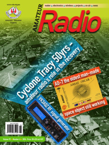 The serious tenor of our feature articles covering the 50th anniversary of the Cyclone Tracy disaster was, unfortunately, tinged with sadness. One of our authors, Bruce Bathols VK3UV, became a silent key shortly before we went to press. Bruce, a stalwart of WIA affairs over decades, was a witness to and key participant in the radio amateur community’s role in the recovery from Cyclone Trace. We’ll have a silent key article about Bruce next year.