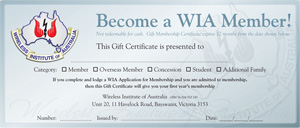 ** Note : To redeem a "Become a WIA Member" Gift Certificate, it will need to be accompanied by a completed and signed WIA membership application form.