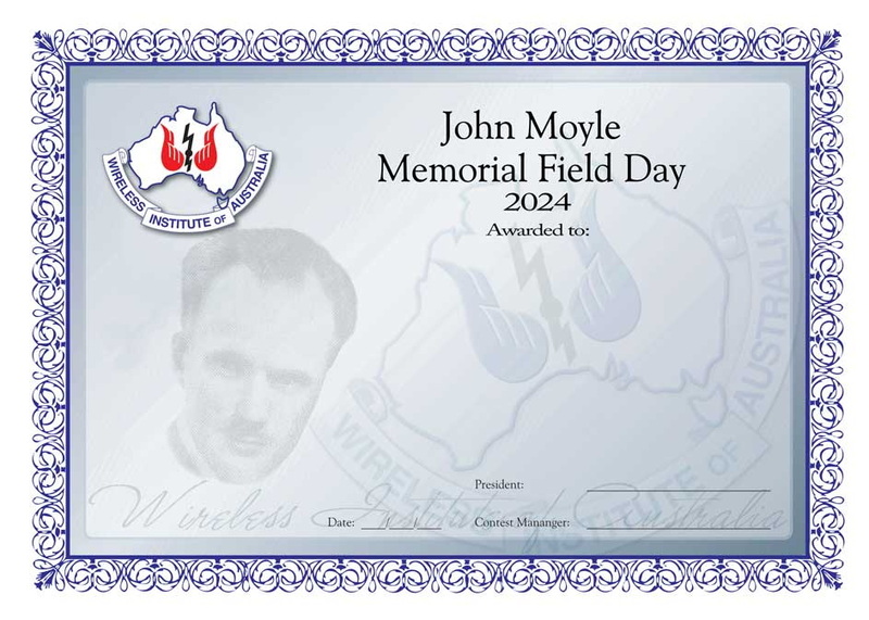The WIA decided that a suitable long term memorial to John Moyle would be a Field Day with a focus on portable or field operation. The contest has been conducted annually ever since.