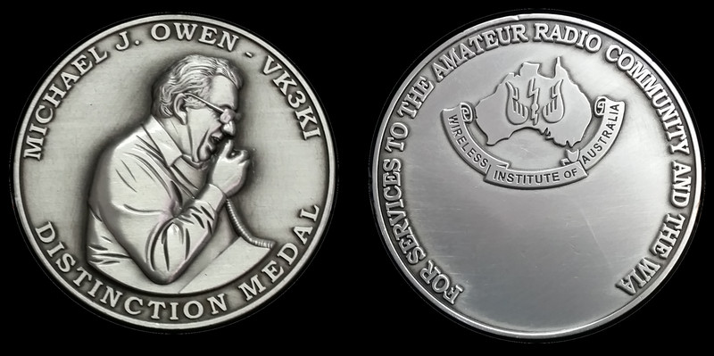 The Michael J. Owen Distinction Medal is presented in recognition of services to the amateur radio community and the WIA. This is the second highest WIA merit award.