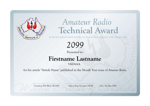 for the best technical article published in Amateur Radio magazine in the previous calendar year.
