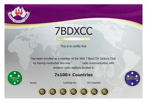 7 Band DXCC award
