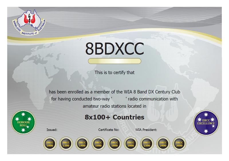 - WIA "DXCC Excellence" achievement is available for reaching a minimum level of 340x8=2720 entities.