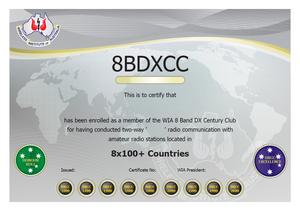 8 Band DXCC award