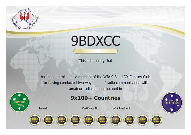 - WIA "DXCC Excellence" achievement is available for reaching a minimum level of 340x9=3060 entities.