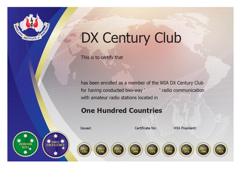 - WIA "DXCC Excellence" achievement is available for working & confirming all current entities.