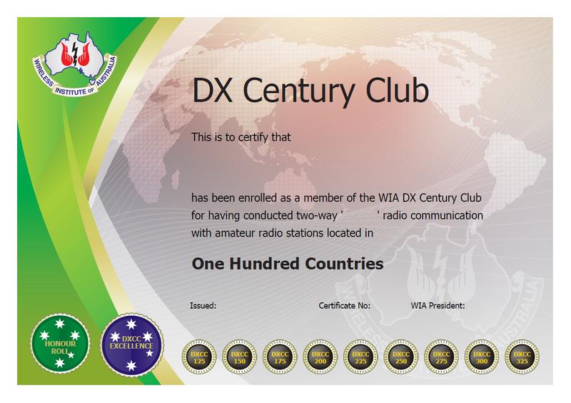 - WIA "DXCC Excellence" achievement is available for working and confirming all current 340 entities.