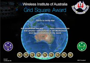 The GRID SQUARE award is available as recognition of the appropriate number of confirmed contacts with Amateur Radio stations in Grid Squares. It's purpose is to stimulate interest in the IARU grid-square system.