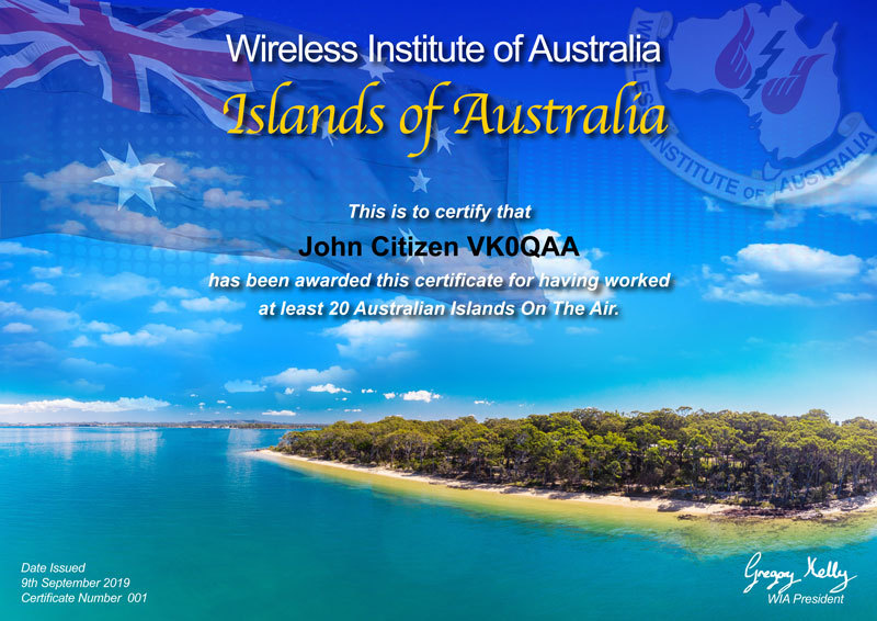 (*) An “Island of Australia" is defined as an Australian (VK) island listed in the RSGB/Islands On The Air (IOTA) Ltd Program. This list can be found via this Link