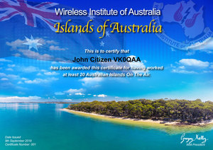 This award recognises contacts with Amateur Radio stations on any of the 56 qualifying Islands of Australia *.