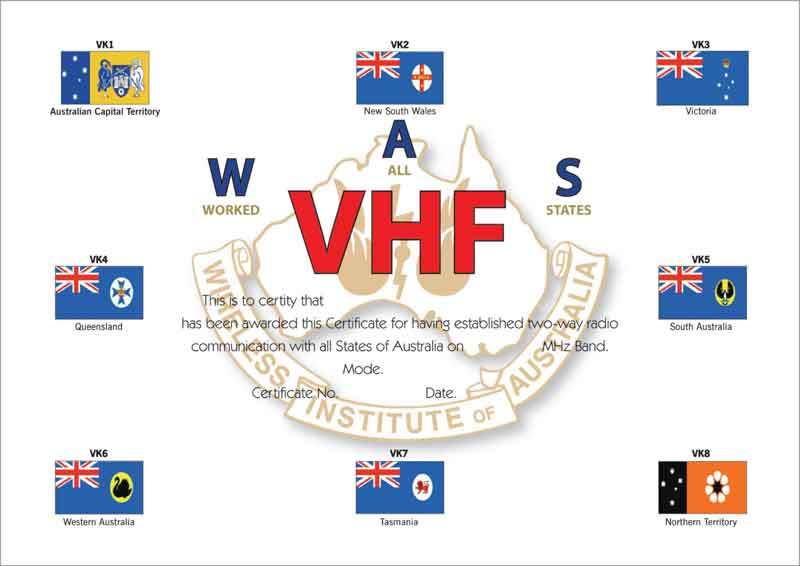 Encourages using VHF to work all Australian states and two territories. (VK1-VK8). Available for working at least one station in each state and mainland territory.