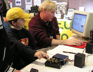 The WIA Centenary themed radio and communications display at this well attended science orientated public event in the Goyder Pavillion, Adelaide Showgrounds, Wayville. The display organisers are Adrian Snell VK5ZSN, Paul Hoffman VK5PH and Paul Schulz VK5FPAW.