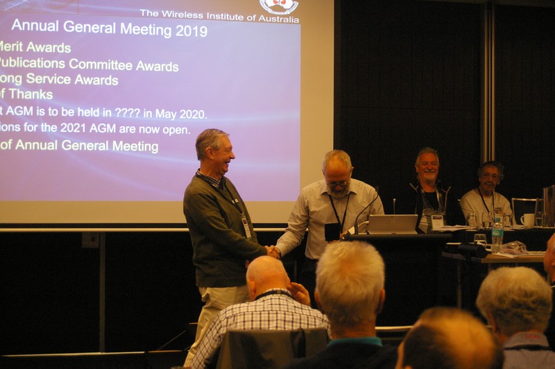 The picture included with this story is the presentation of the Michael Owen Distinction Medal to Peter Wolfenden VK3RV.