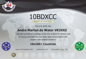 WIA DX Awards 6M Single-Band and 10-Band DXCC now available.
