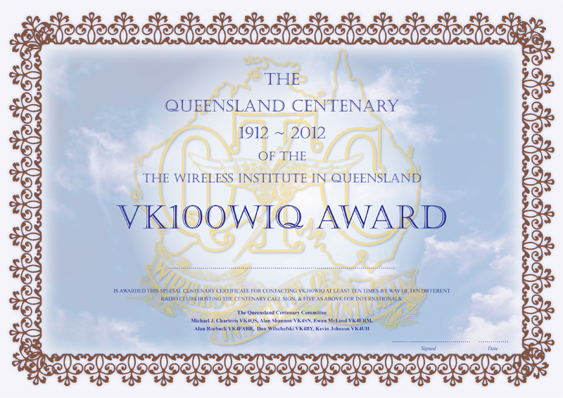 To qualify for the Centenary Award in Australia Amateur Operators are required to contact VK100WIQ at least 10 times.
